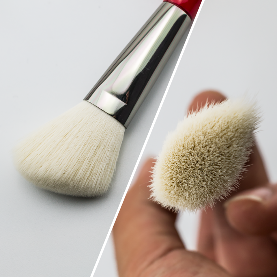 ✅ Realizată din păr natural de capră, moale și dens, această pensulă este ideală pentru conturarea feței cu produse pudră.