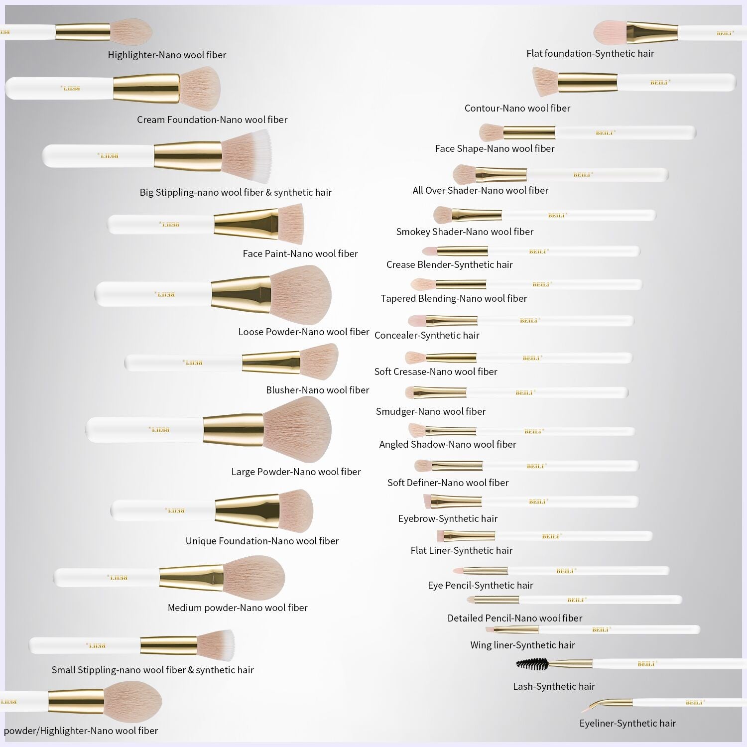 Setul Beili White Complete Vegan conține 30 de pensule profesionale, realizate 100% din fibre sintetice premium, ultra fine și rezistente, prietenoase cu pielea și cu mediul. Este alegerea ideală atât pentru pasionații de machiaj, cât și pentru make-up artiști, oferind tot ce ai nevoie pentru un look complet și impecabil.